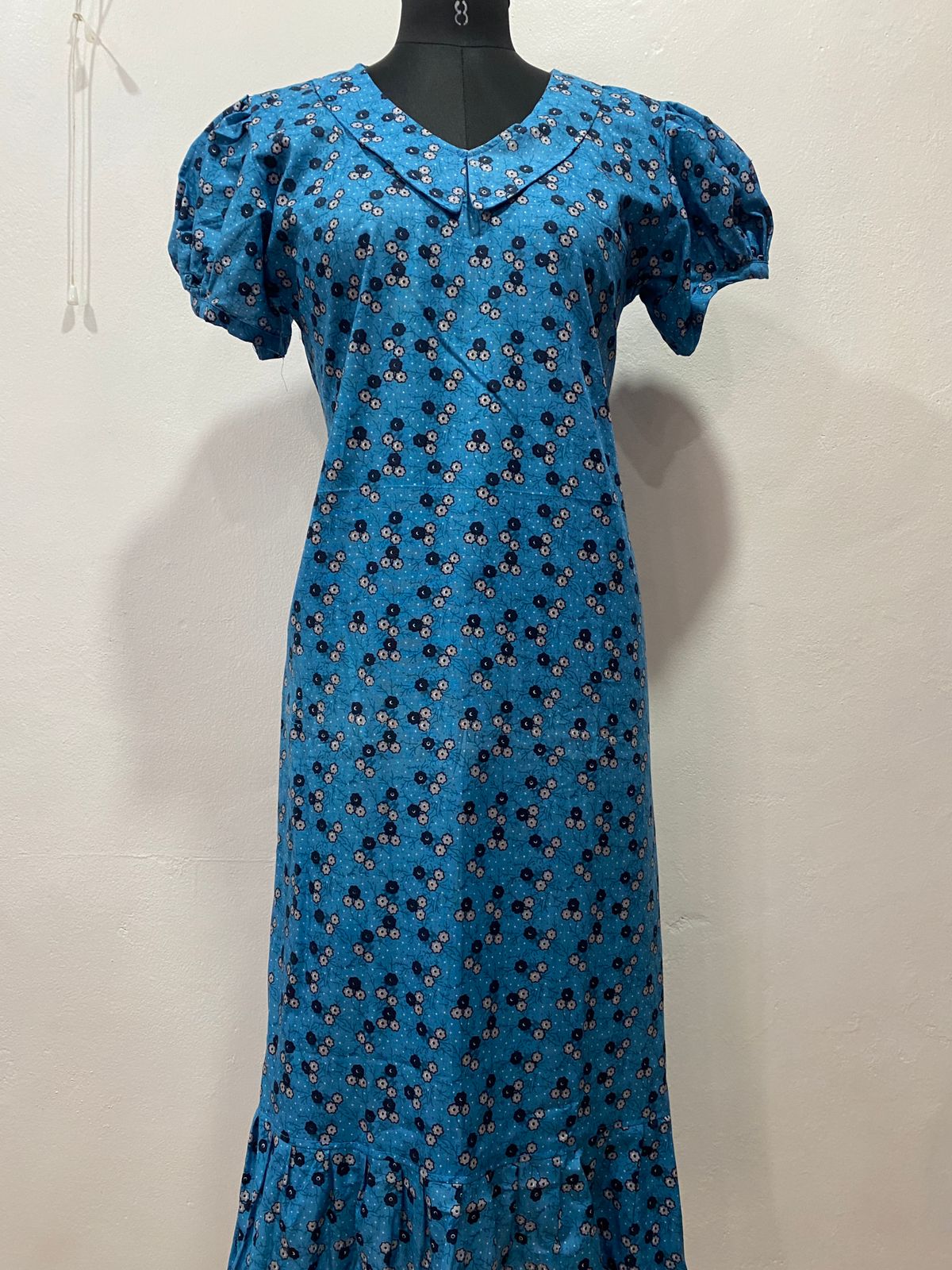 COTTON NON-FEEDING FROCK NIGHTY WITH PETER PAN COLLAR & PUFF SLEEVE