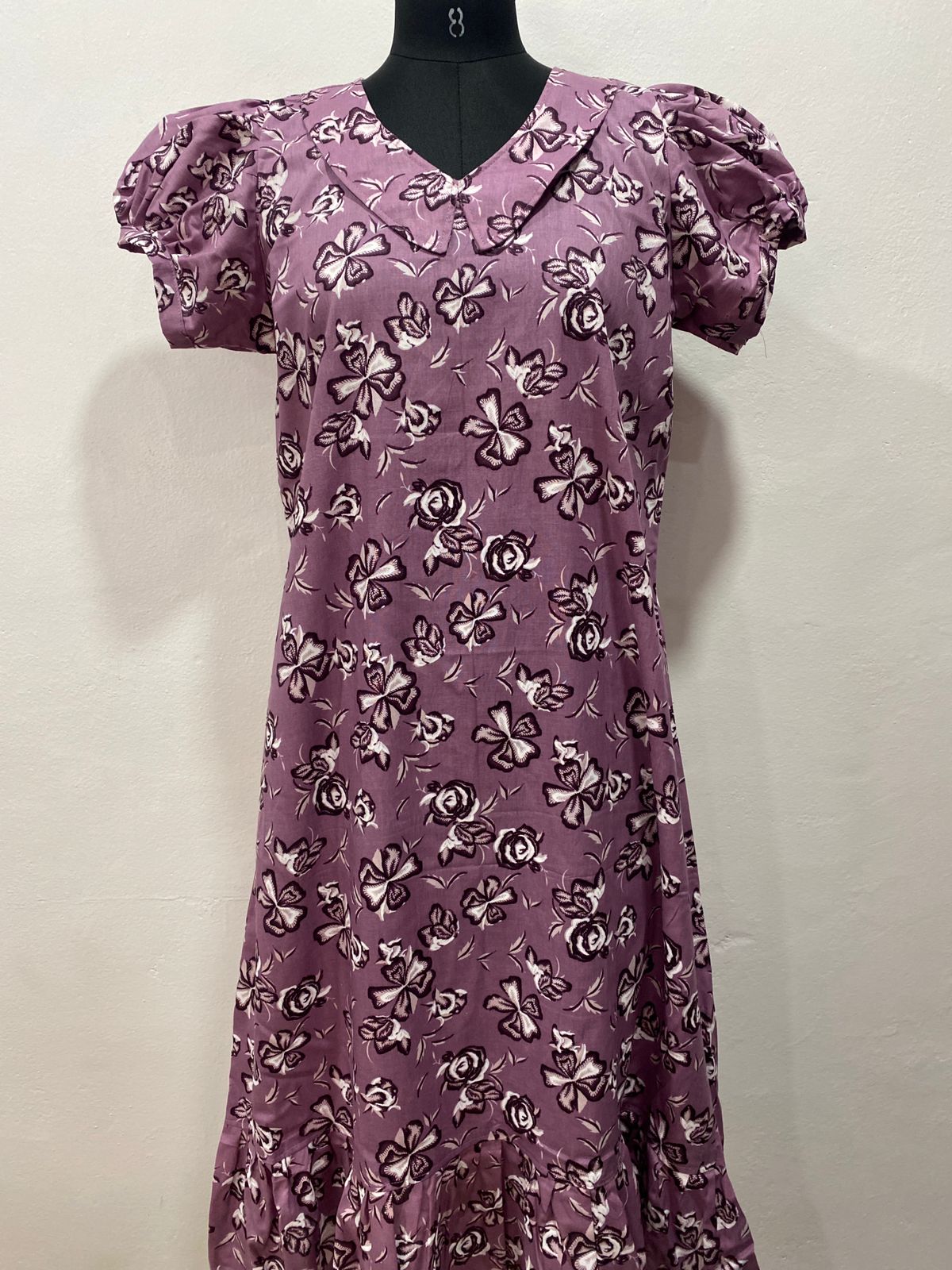 COTTON NON-FEEDING FROCK NIGHTY WITH PETER PAN COLLAR & PUFF SLEEVE