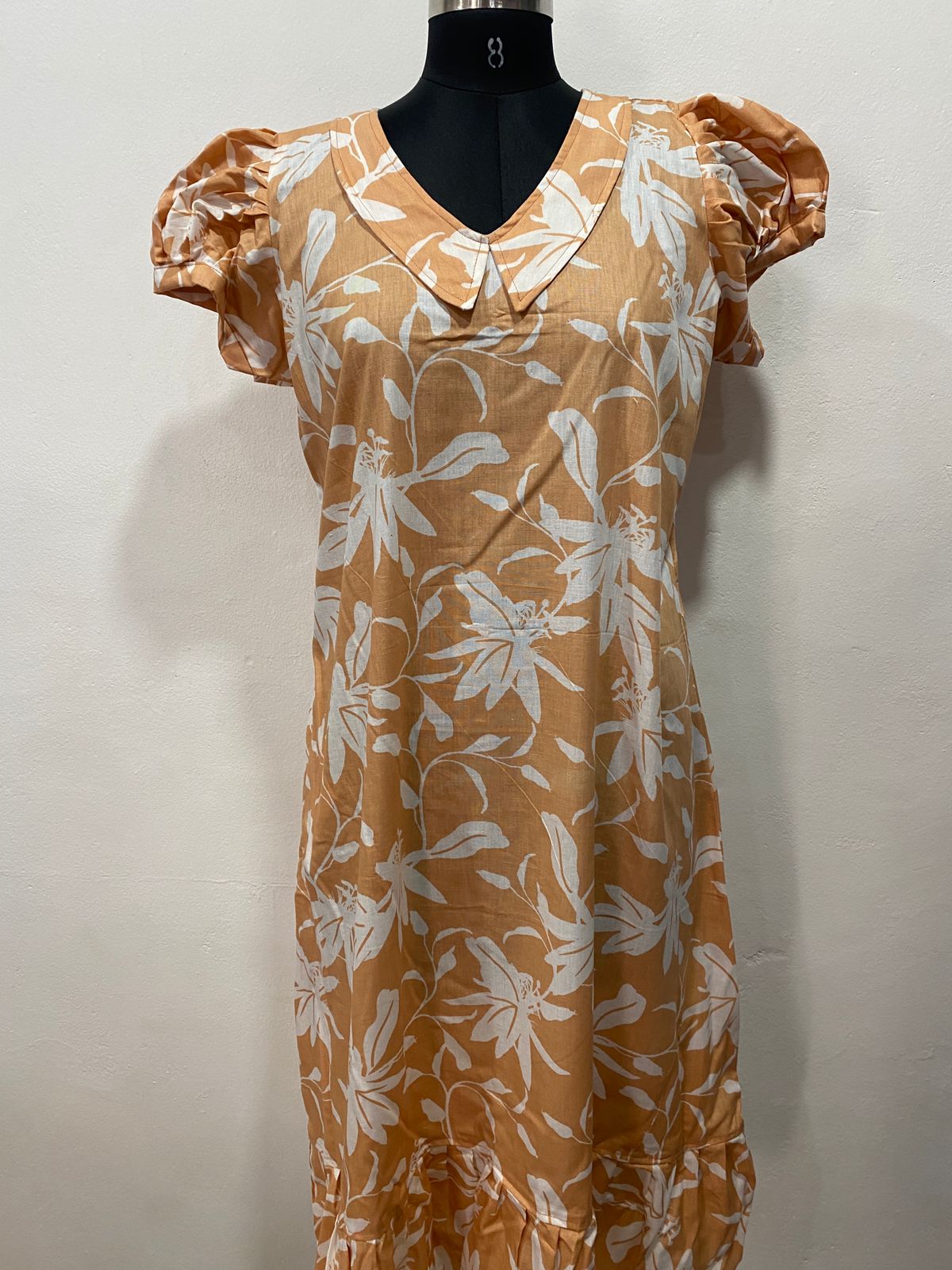 COTTON NON-FEEDING FROCK NIGHTY WITH PETER PAN COLLAR & PUFF SLEEVE
