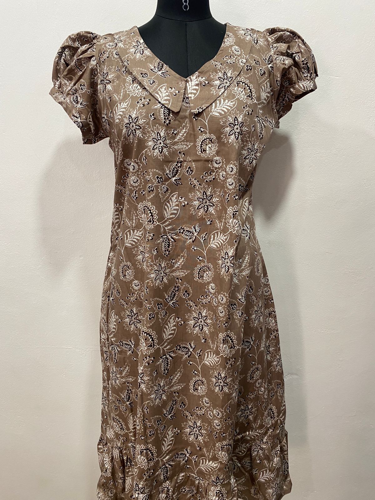 COTTON NON-FEEDING FROCK NIGHTY WITH PETER PAN COLLAR & PUFF SLEEVE
