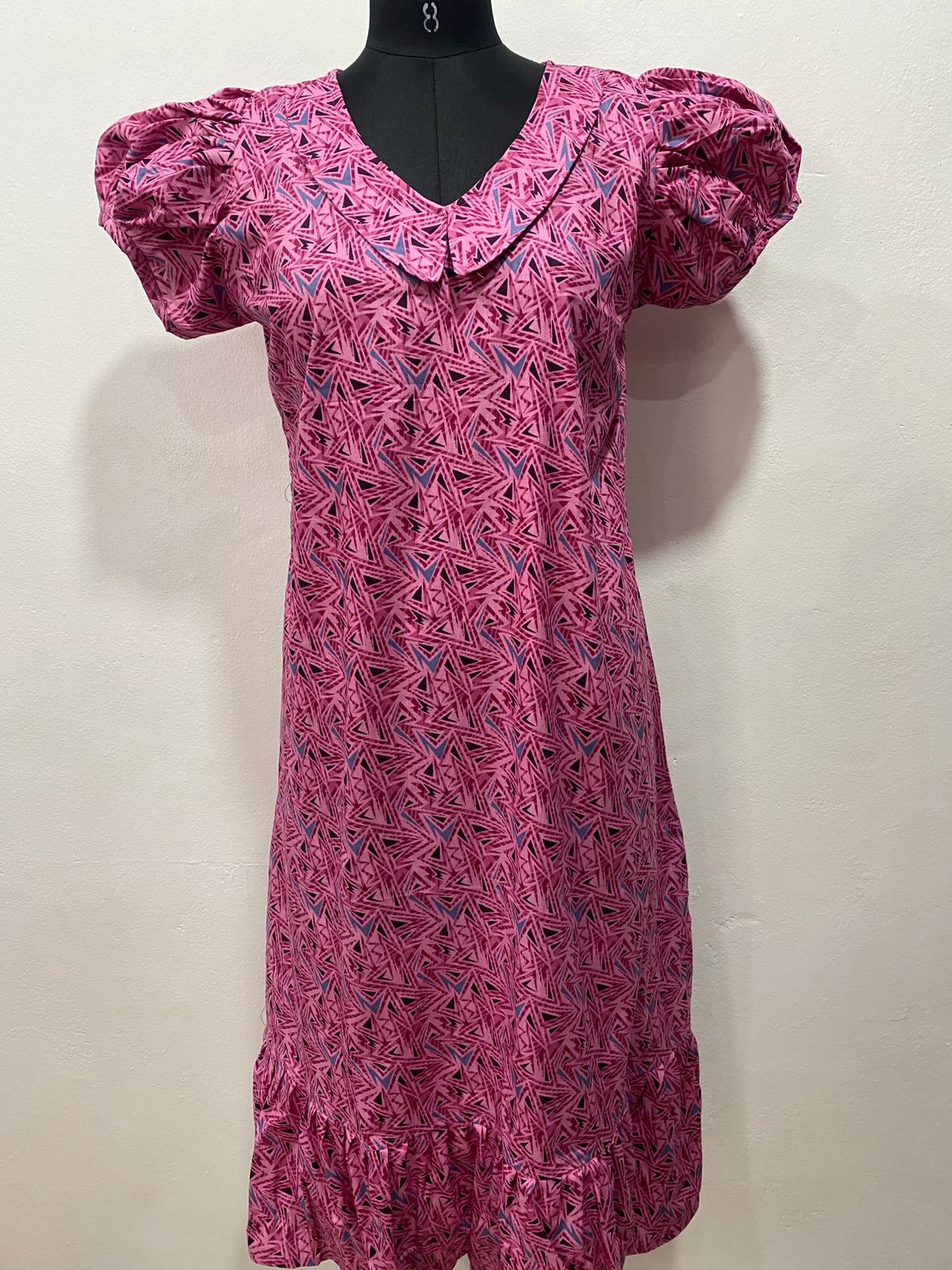 COTTON NON-FEEDING FROCK NIGHTY WITH PETER PAN COLLAR & PUFF SLEEVE
