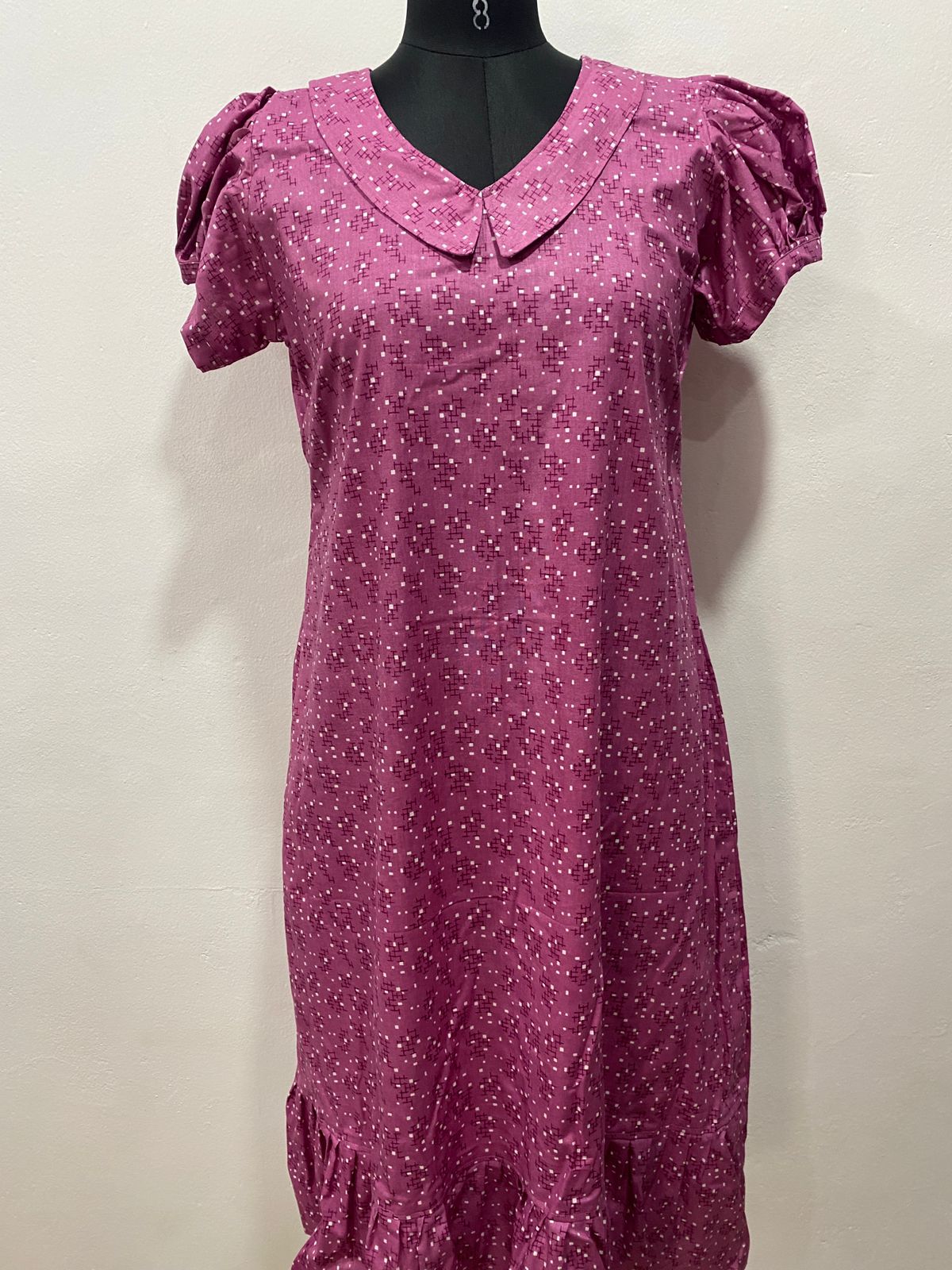 COTTON NON-FEEDING FROCK NIGHTY WITH PETER PAN COLLAR & PUFF SLEEVE