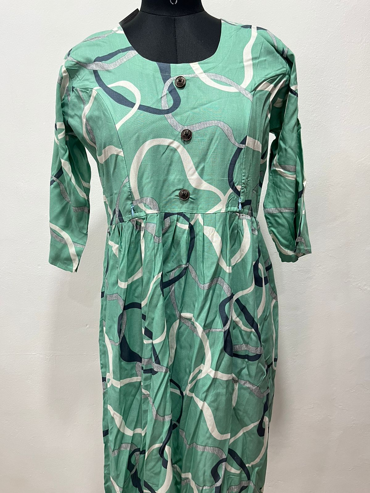 our stylish and functional feeding kurti crafted from soft and breathable rayon fabric, ensuring comfort for both you and your little one. The 3/4 sleeves add a touch of elegance to this versatile piece, making it suitable for various occasions.