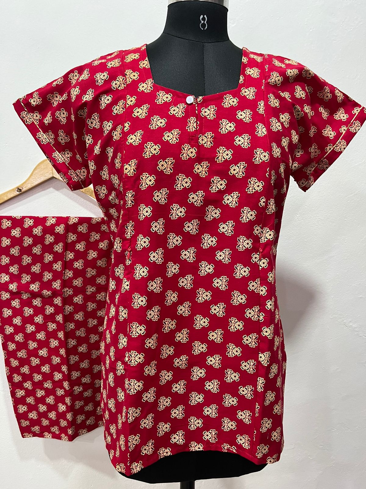 This night Dress can be hand washed or a normal machine washed with cold water. Please make sure to dry the nighty in a light shade away from the direct sunlight. Prefer first wash as hand wash with cold water.