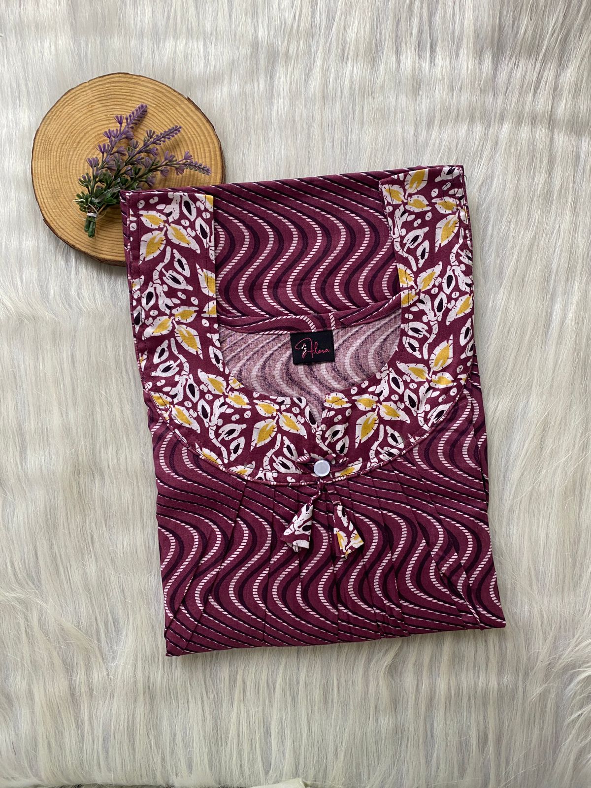 This nighty can be hand washed or a normal machine washed with cold water. Please make sure to dry the nighty in a light shade away from the direct sunlight. Prefer first wash as hand wash with cold water.