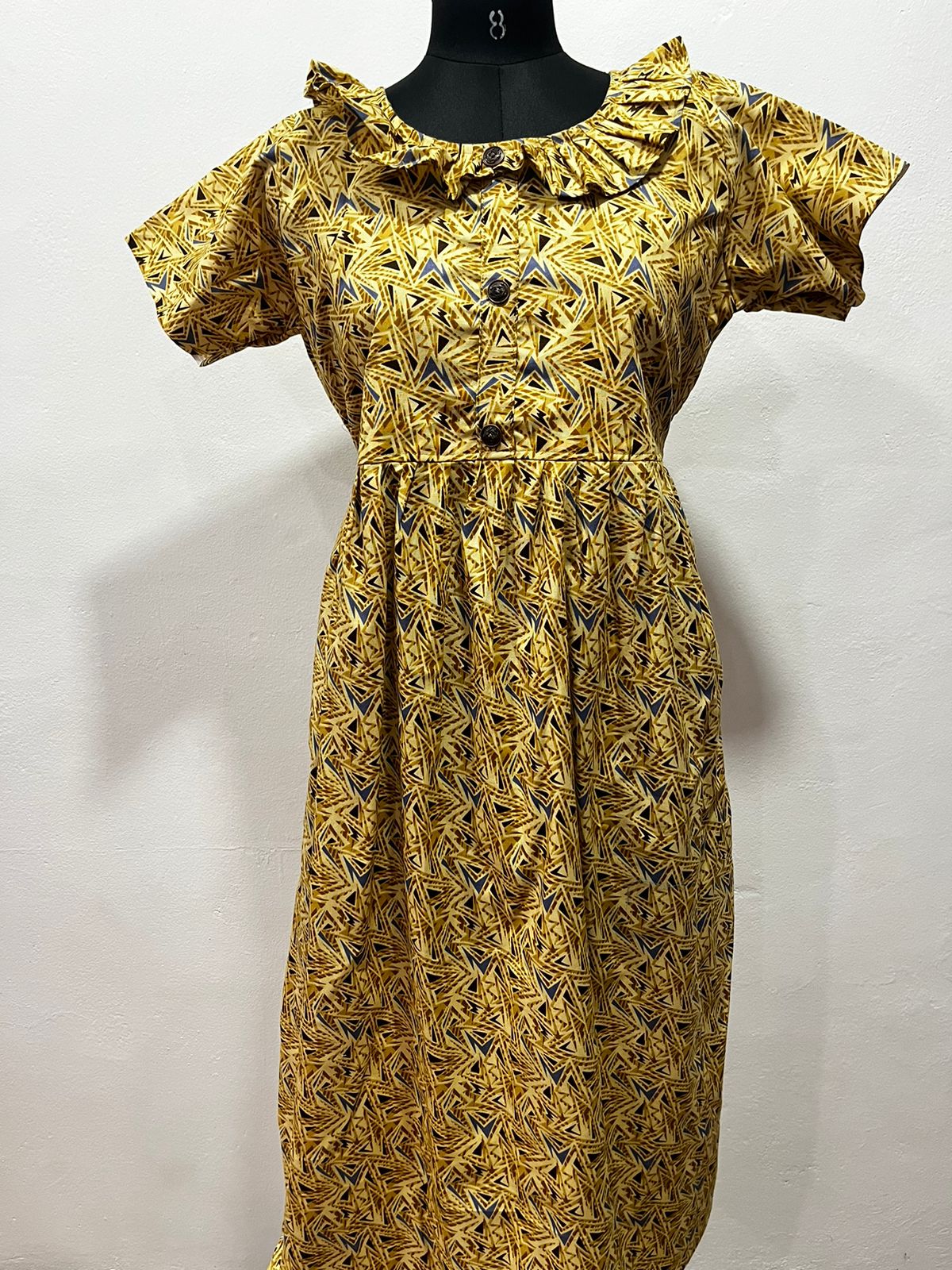 COTTON NON-FEEDING FROCK NIGHTY WITH PETER PAN COLLAR & PUFF SLEEVE