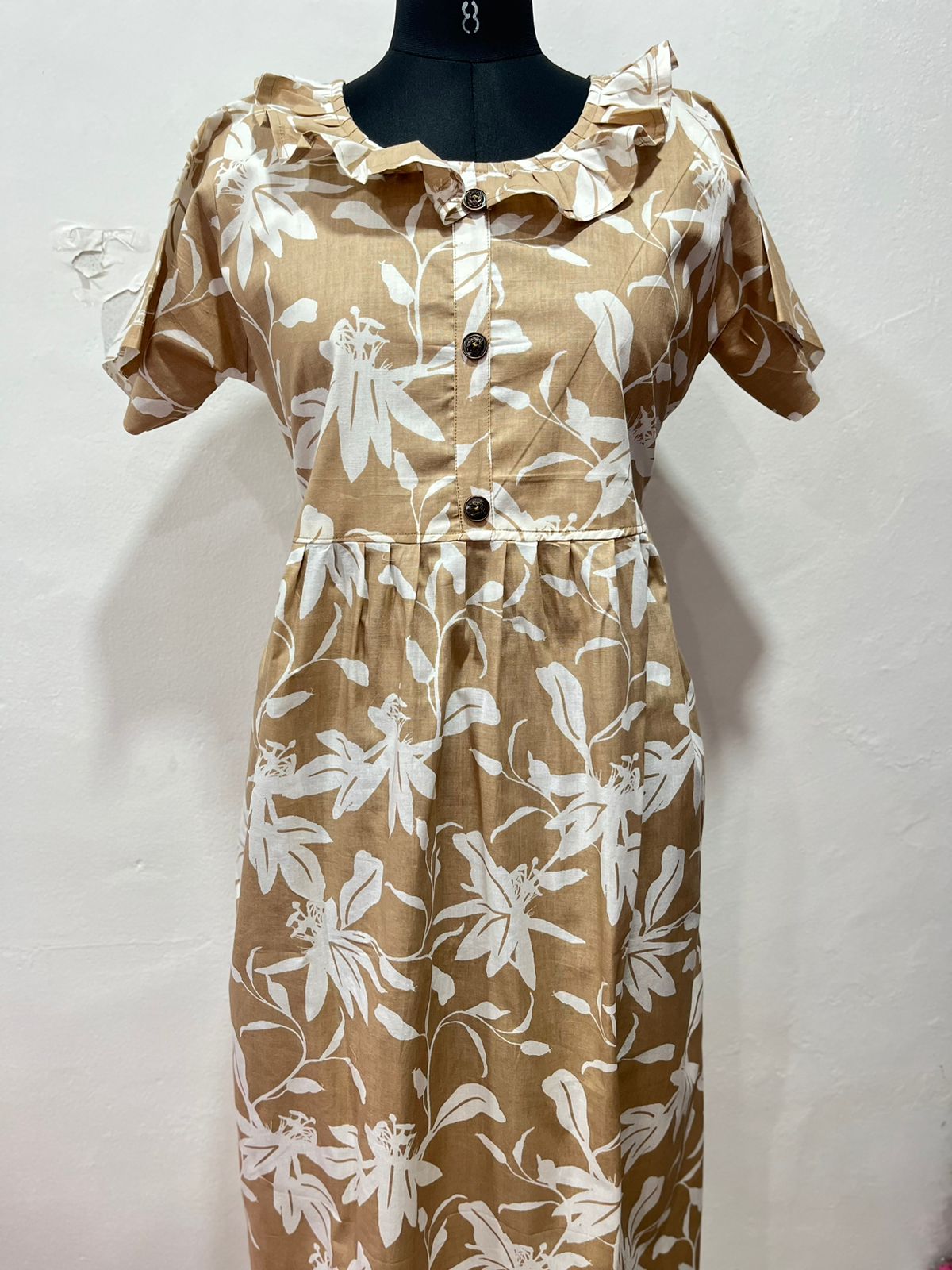 COTTON NON-FEEDING FROCK NIGHTY WITH PETER PAN COLLAR & PUFF SLEEVE