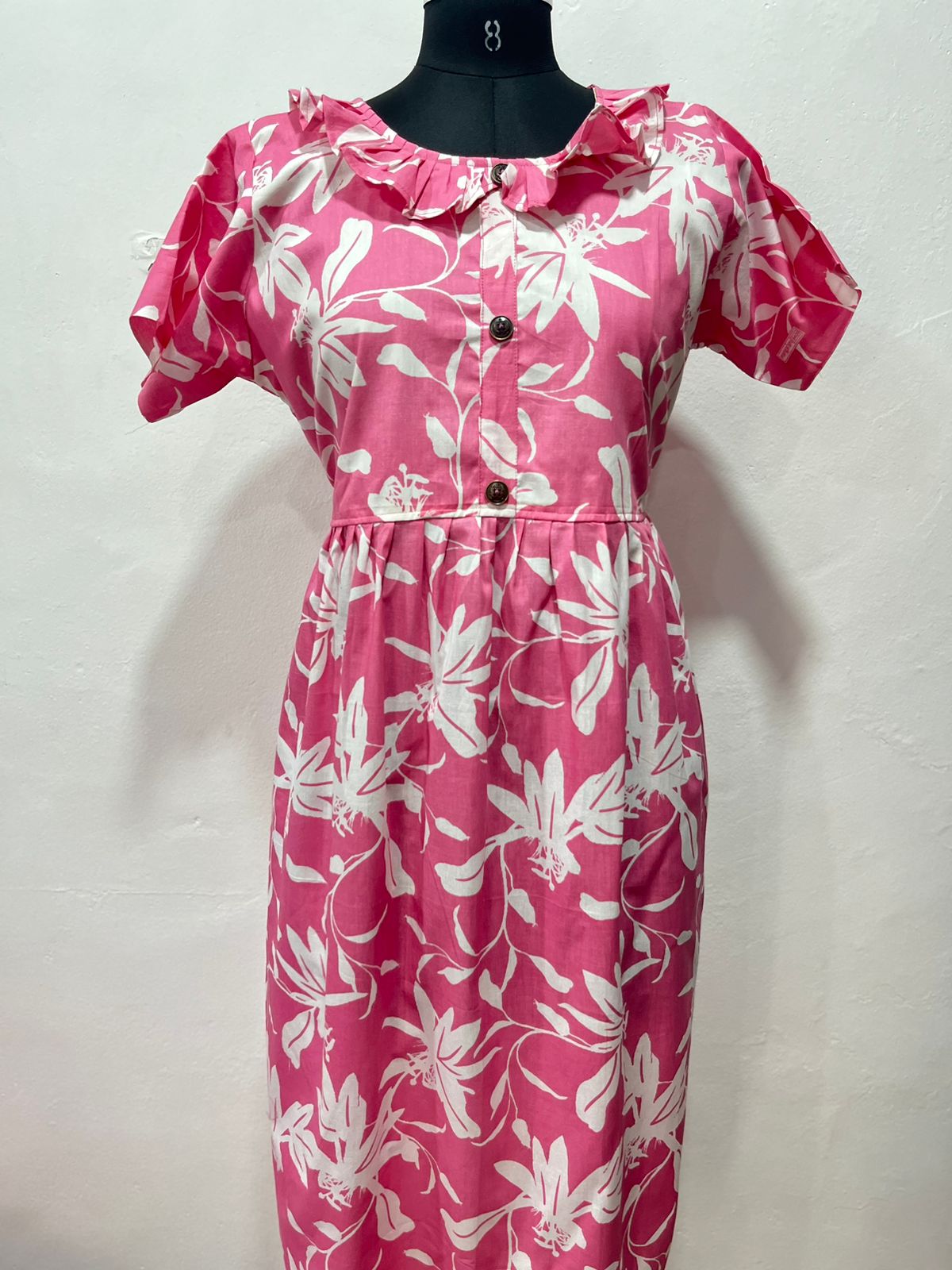 NON-FEEDING FROCK NIGHTY WITH SIDE POCKET & ELASTIC PUFF SLEEVE