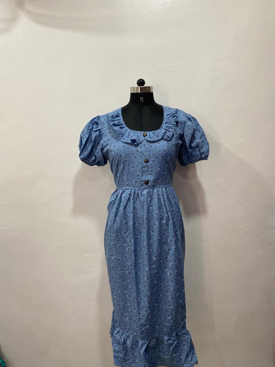 / POLYESTER NON-FEEDING FROCK NIGHTY WITH PUFF SLEEVE AND SIDE POCKET