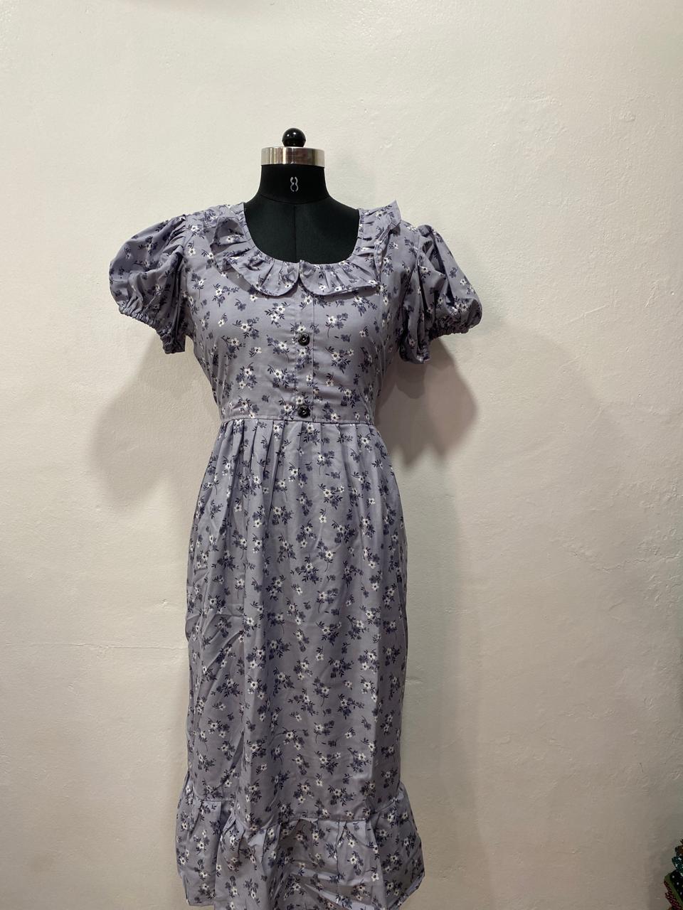 / POLYESTER NON-FEEDING FROCK NIGHTY WITH PUFF SLEEVE AND SIDE POCKET