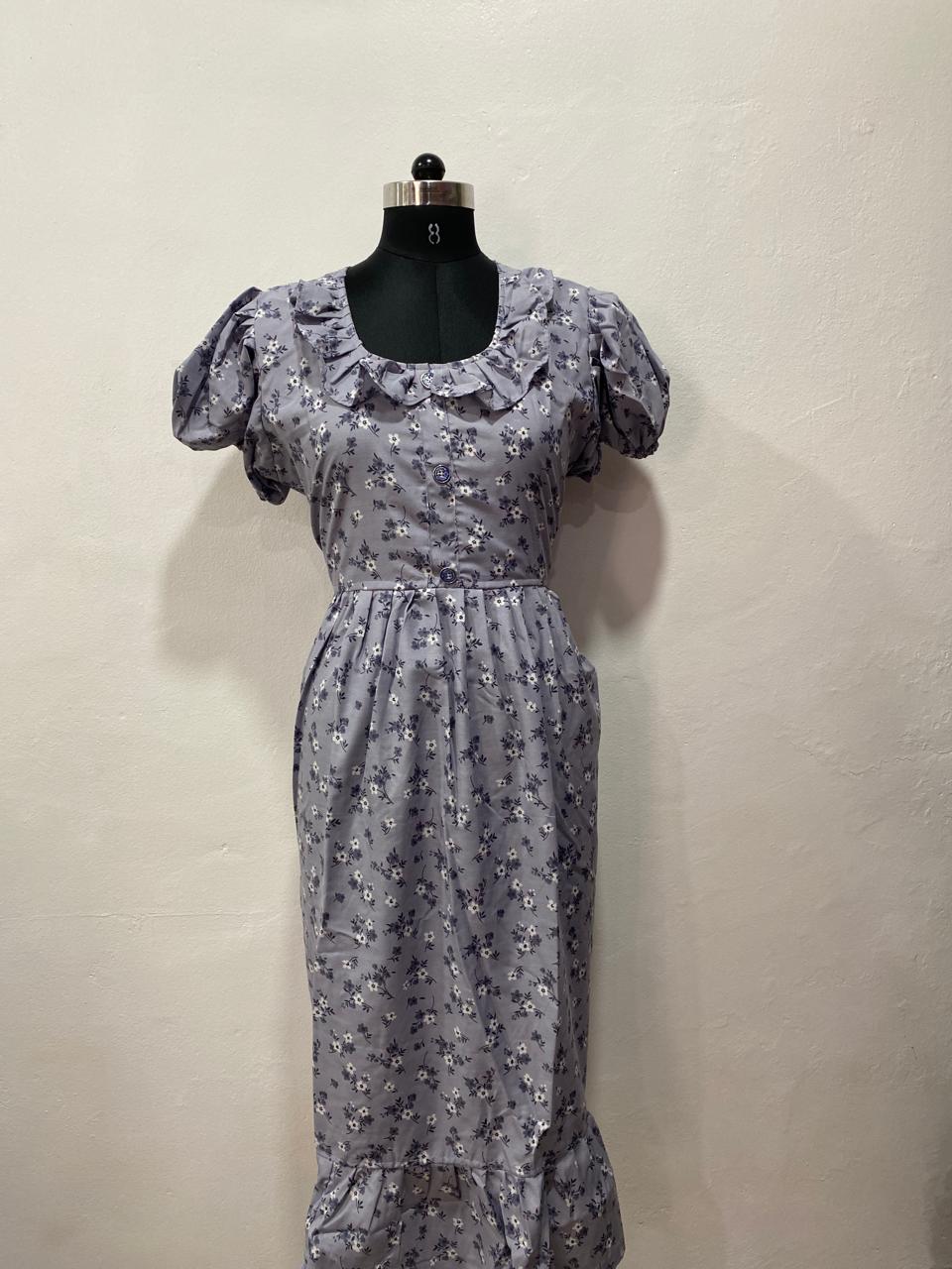 / POLYESTER NON-FEEDING FROCK NIGHTY WITH PUFF SLEEVE AND SIDE POCKET